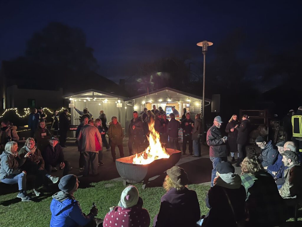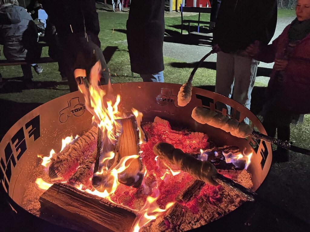 In Einhaus geht es mehr um die Gemeinschaft der Bewohnerinnen und Bewohner, die sich bei Wurst und Punsch, Stockbrot und Gesprächen an dem noch kühlen Abend um das warme Feuer versammeln.
