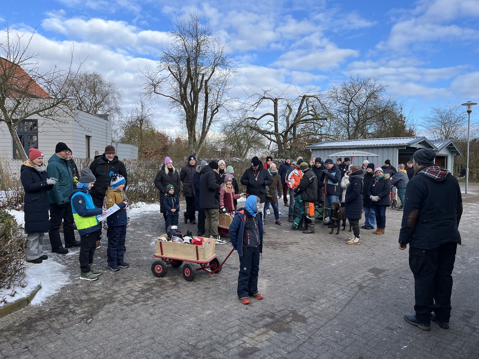 Bei bestem Winter-Sonnenschein versammelten wir uns um die rollenden Kugeln.